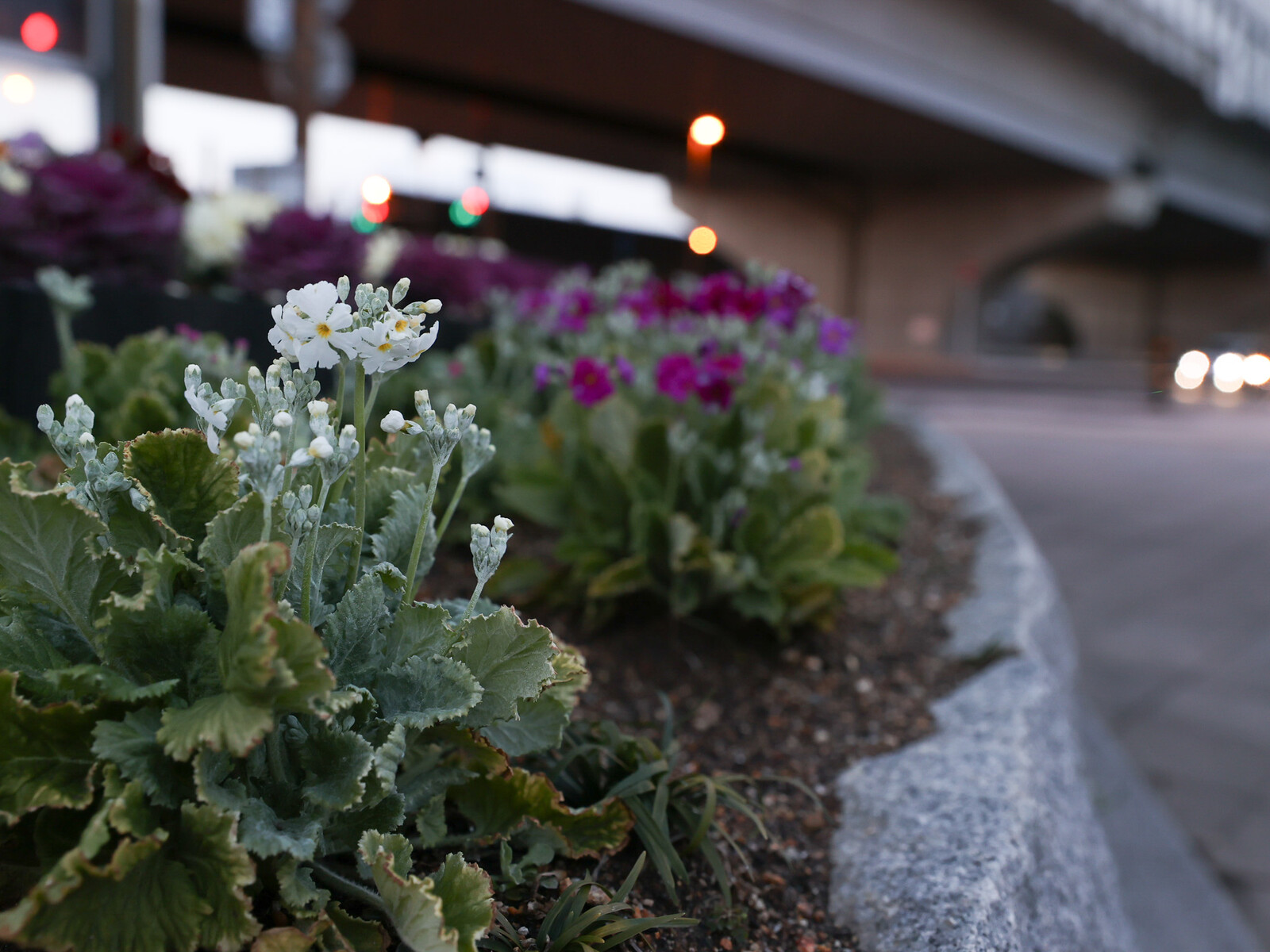 整然と並んでる、葉牡丹。第二京阪道路下の北河内サイクルロードにある花壇がきれい