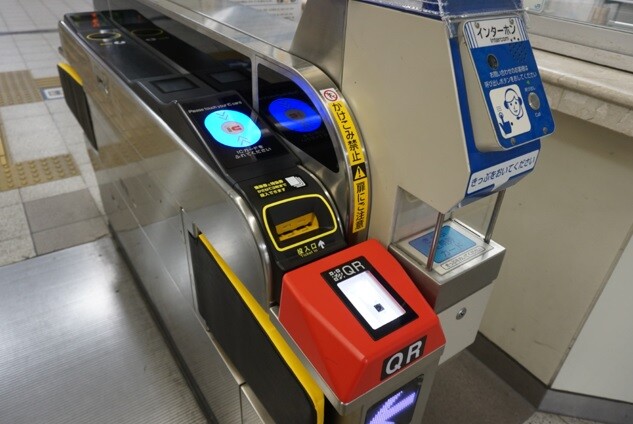 ▼京阪電車の駅のQRコード改札機