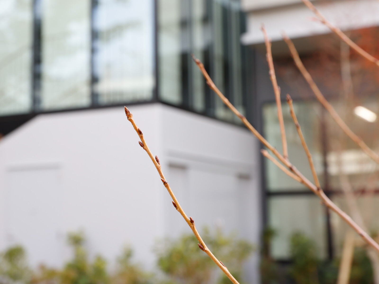 植えられた桜にはすでに小さな芽が芽吹いていました。
