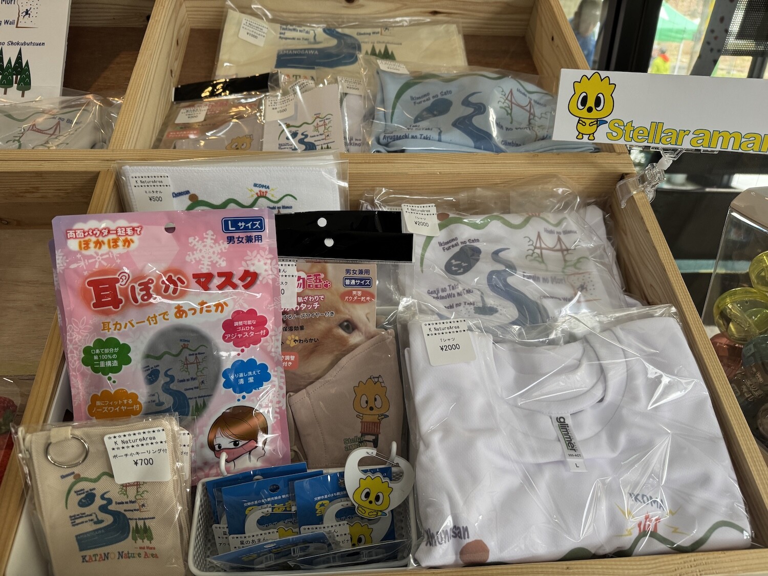 交野みどりの駅「KATANO GREEN MARKET」では、私市産のイチゴが今がシーズンなのでイチゴがたくさん出ていますが、他にはアウトドアグッズやKATANO Nature Areaのグッズ販売などもあり、こちらもなんというかこう、品揃えに安定感があります。