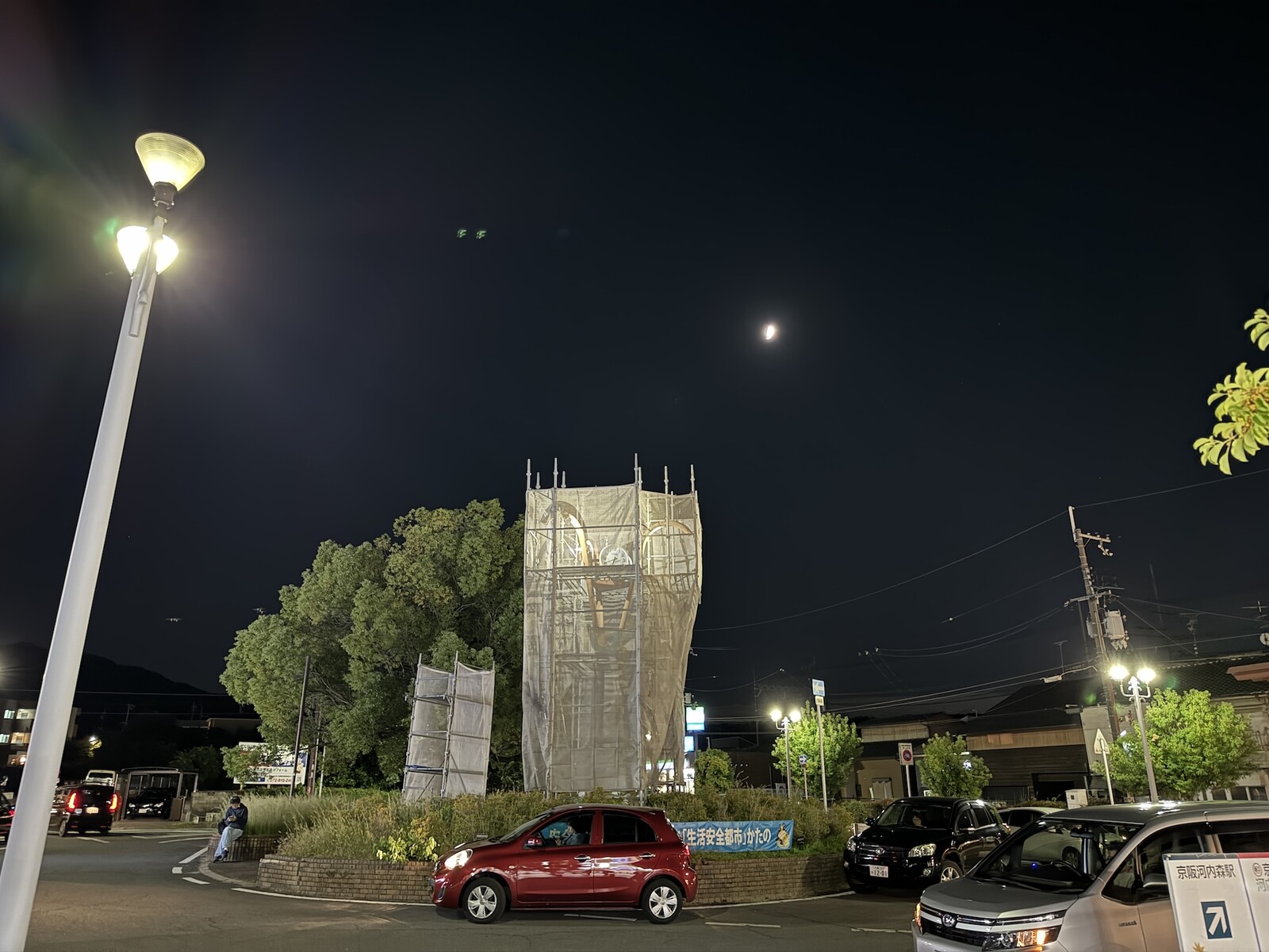 JR河内磐船駅前の時計塔とかが謎のベールにつつまれてる