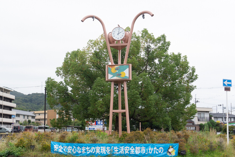 JR河内磐船駅前の時計塔が謎のベールを外してる【情報提供:交野さんぽ。さん】