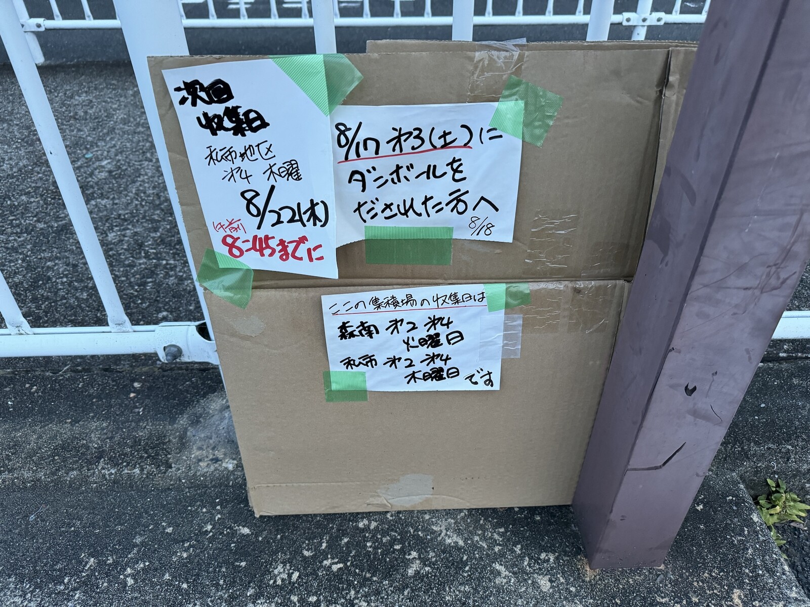 段ボールはこの日に捨てたらダメなんですっていう手書きの注意喚起にヒューマンドラマを感じた