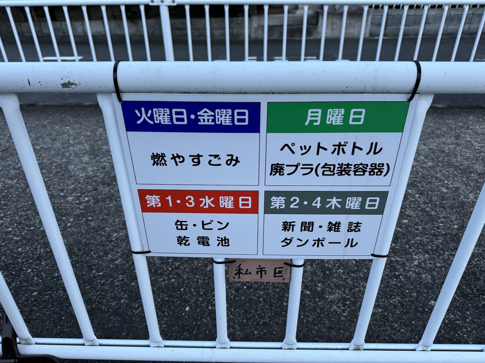 ごみ収集場のところには目立つように曜日ごとにどのゴミが収集となるのかがわかりやすく掲示されていました。