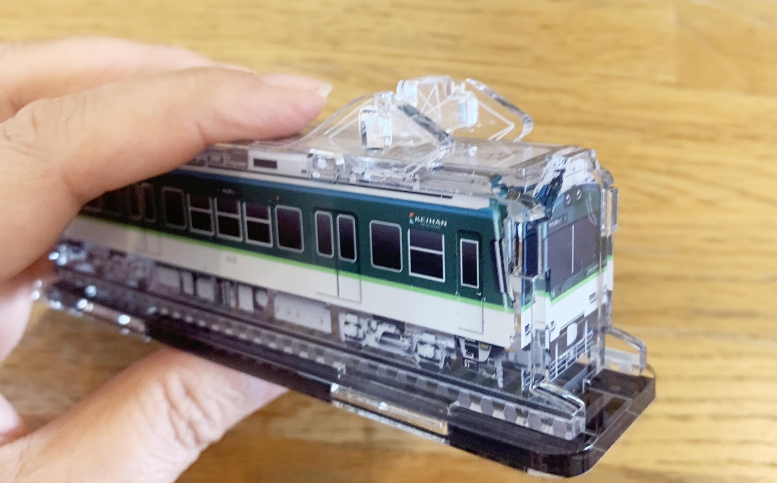 ちょっと珍しい京阪電車の立体アクスタ。「3Dアクデン」交野市内(ソレイユカフェ)で販売中