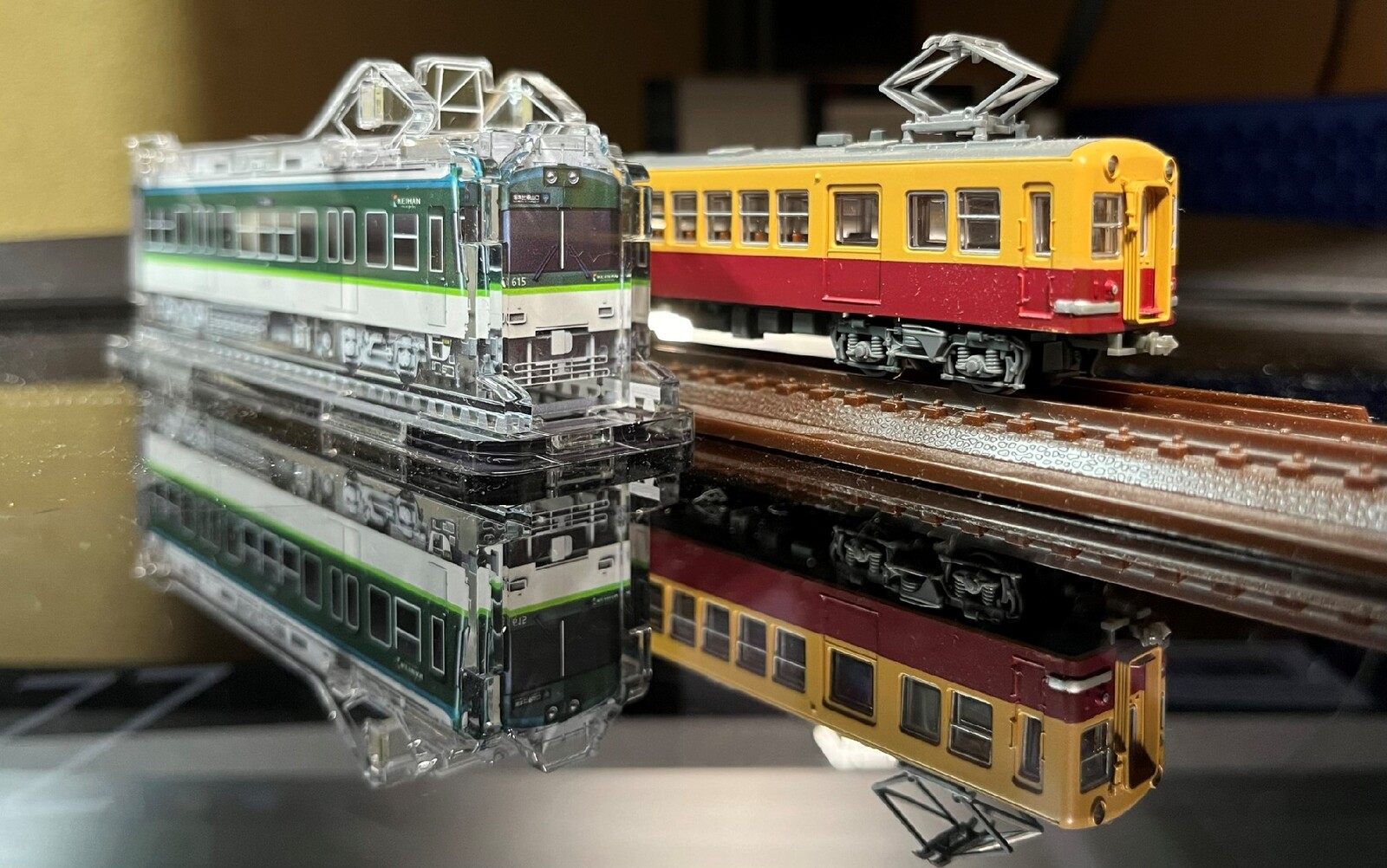 Nゲージ標準スケールの1/150と比較して、アクデンの中身は若干のオーバースケールですが、見た目はアクリル板の厚みがプラスされます。