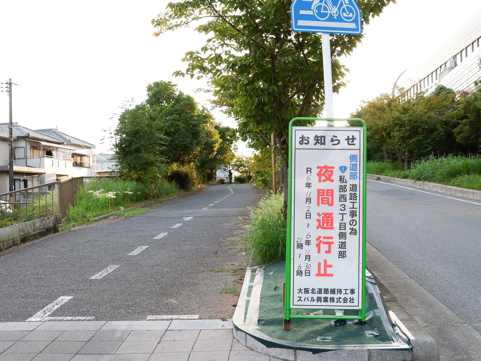第二京阪道路の下の道路、国道1号線に入る側道の私部西3丁目側の側道が、夜間だけ通行止めになるようです。