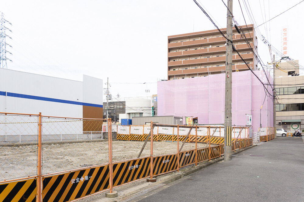 京阪交野市駅前でビルを建設する工事が進んでいます。