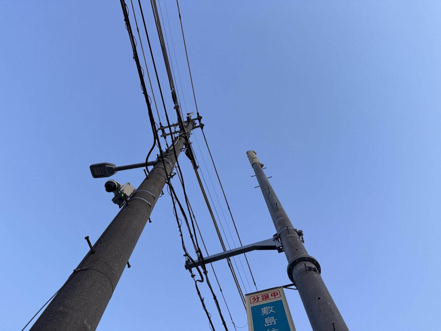 電柱が2つあって、そのうち1本に電線がありませんでした。