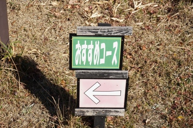 「おすすめコース」の途中にあり、A→C→Dポイントの順番に看板を辿れば着けます。