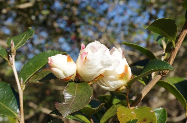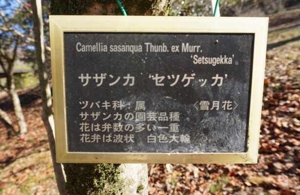 ツバキやサザンカが咲いているのは、日本産樹木見本市の近く。