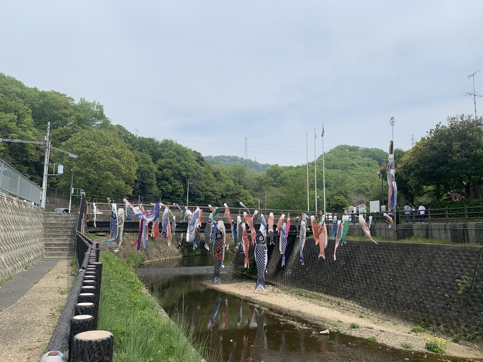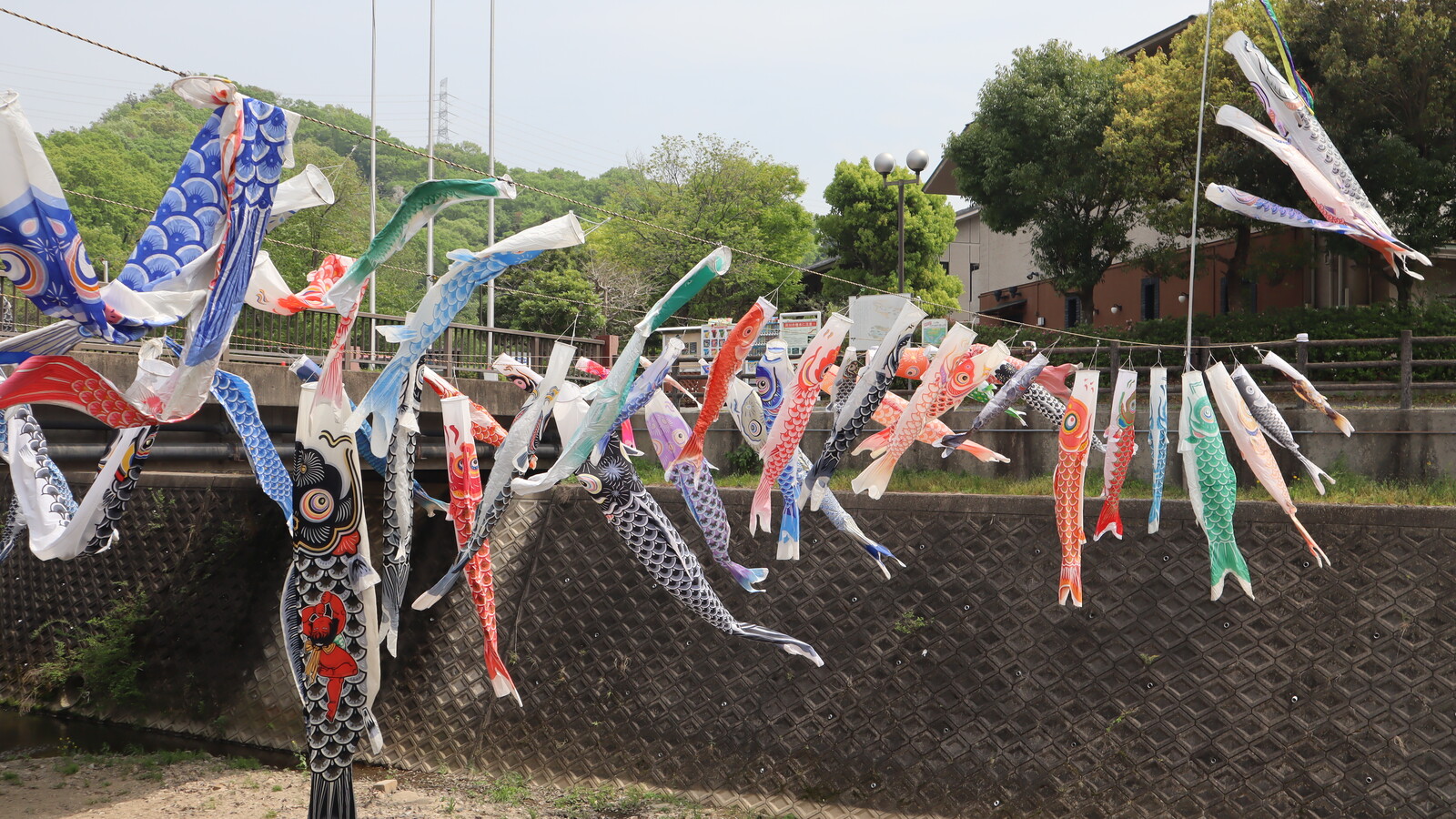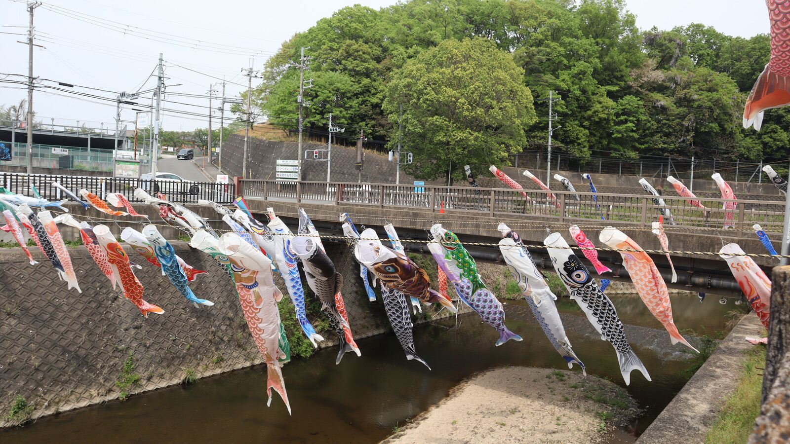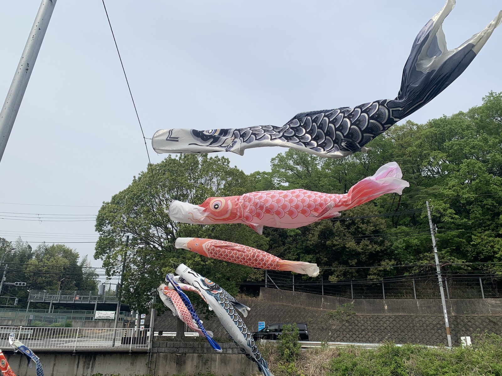 橋の生駒方面側は、比較的大きな鯉のぼりが。