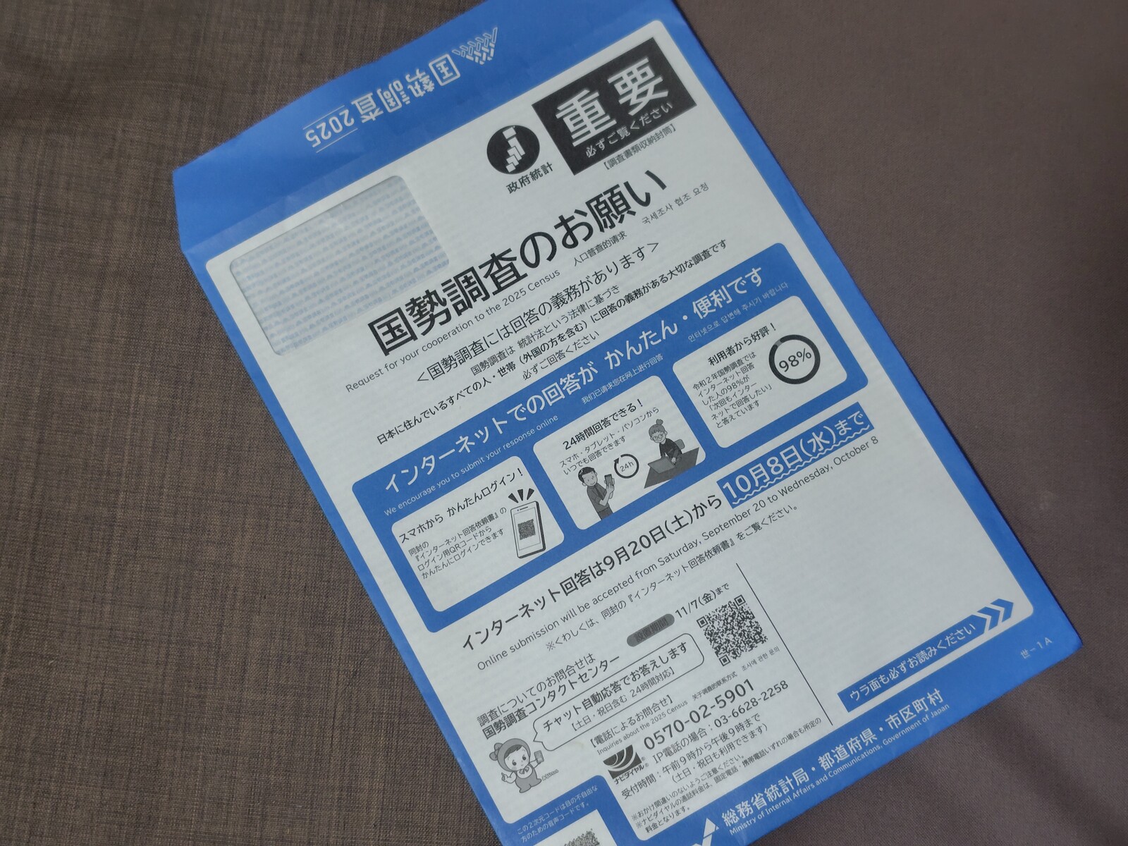国の基礎的な情報を集める調査ですので、皆さん忘れず回答しましょう。