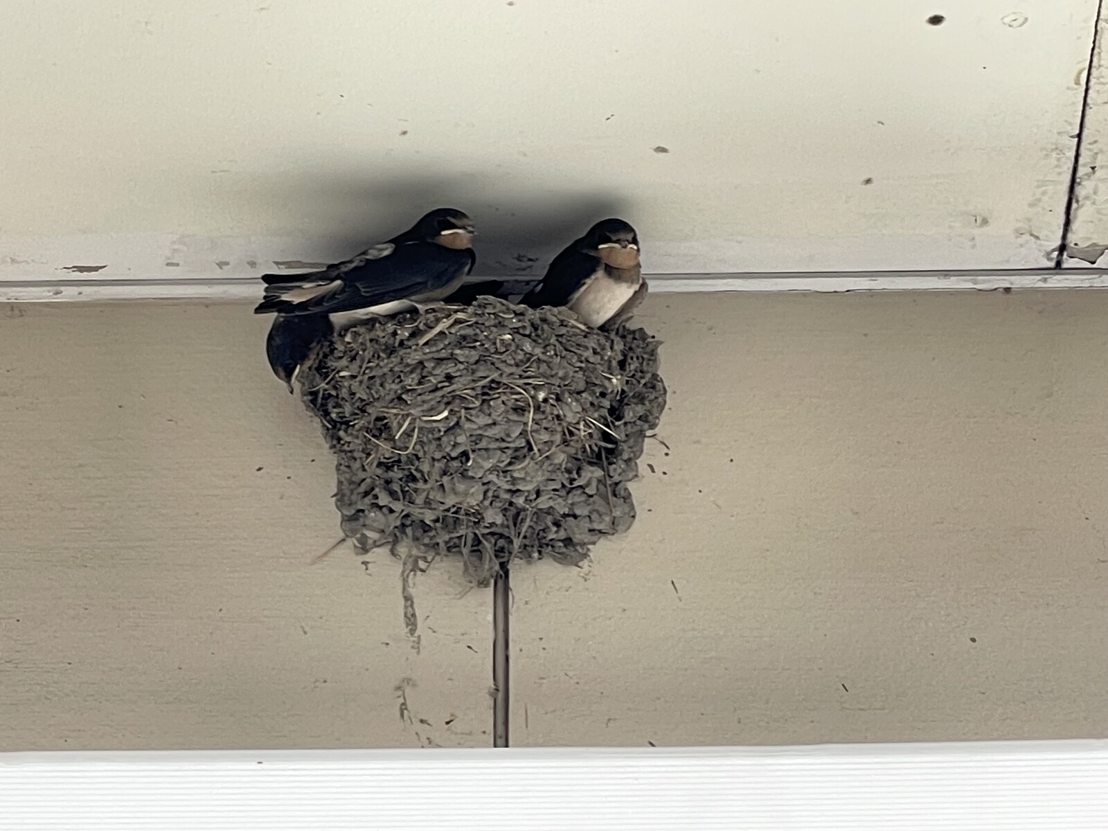 見回すと、改札口を出てすぐの目の前の壁にツバメの巣がありました。