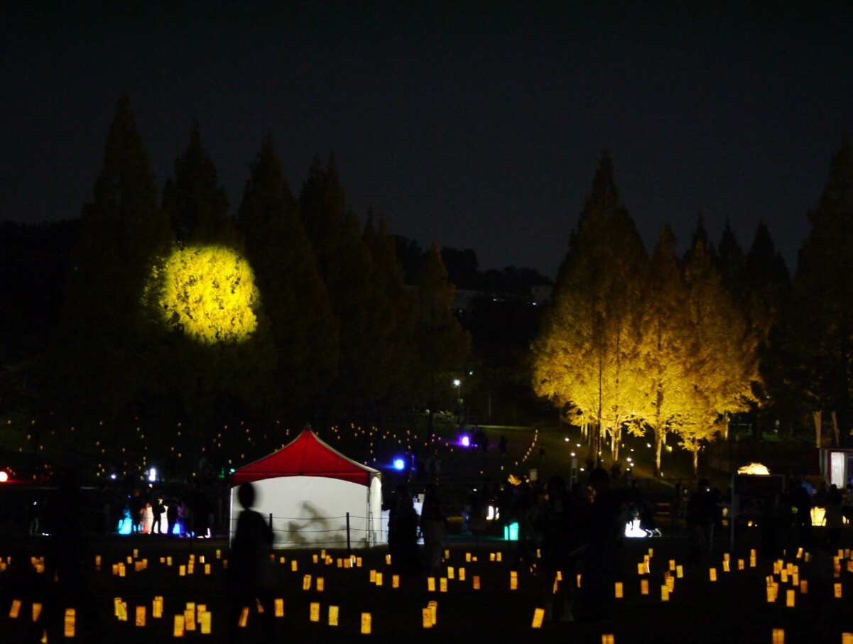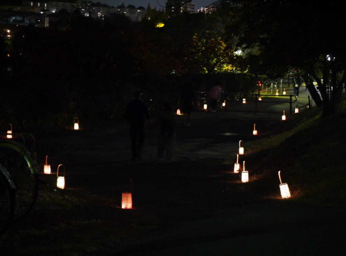 寝屋川の打上川治水緑地で「月見とランタンの夕べ」が行われてる。11月17日(日)まで