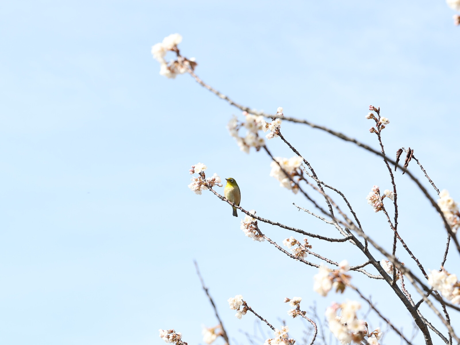 鶯色の緑がとても可愛らしく、見つけやすいので、桜の時期は花びらを突く姿をよく見かけます。