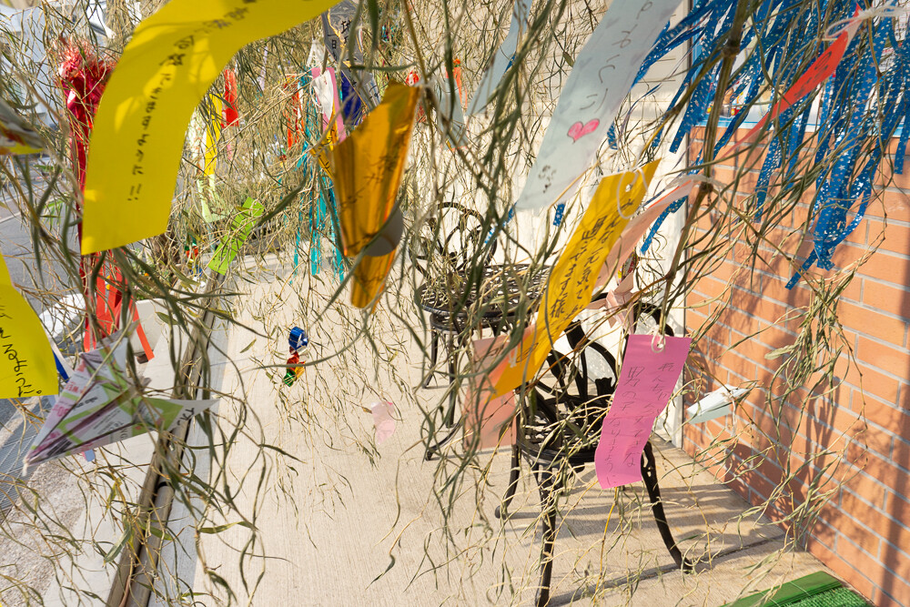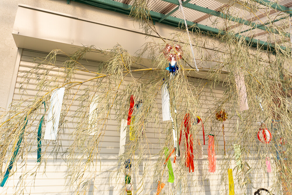 大きな笹にはカラフルな短冊が吊るされています。