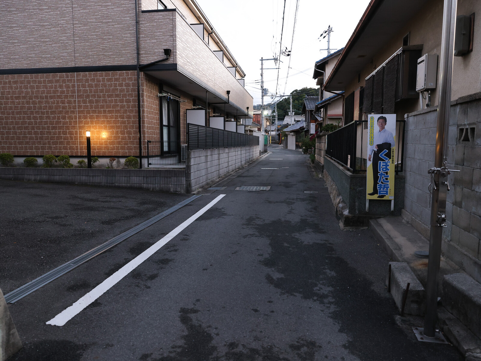 反対のこちらに行くと星田公園の方に向かい、昔ながらの星田の街並みが続くところです。