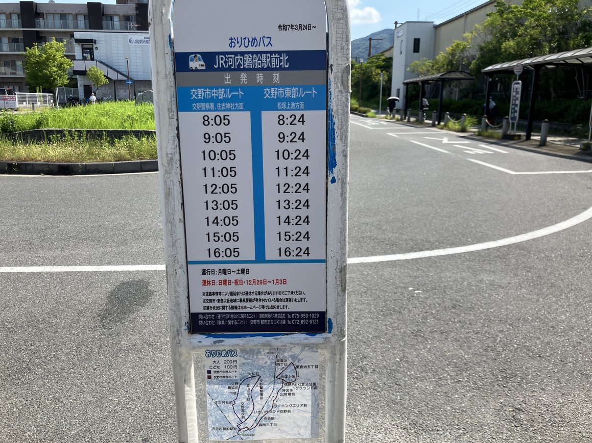 まずは、河内磐船駅のバスロータリーにある時刻表をチェック!