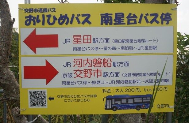 しかしJR星田駅方面はロータリーを経由せず、向かい側の停留所(1枚目の写真)を発着します。