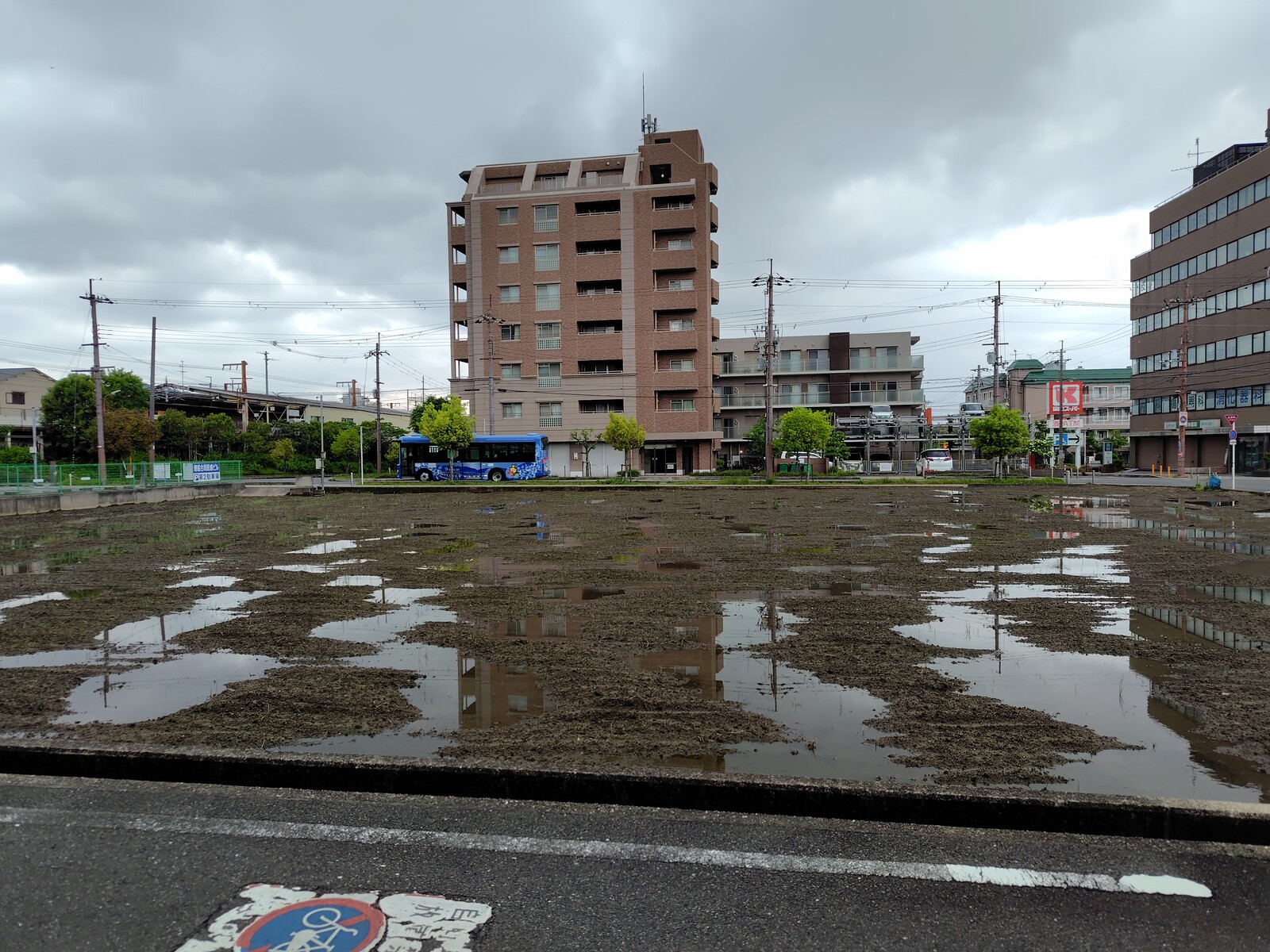 雨上がりのJR河内磐船駅前の田んぼ