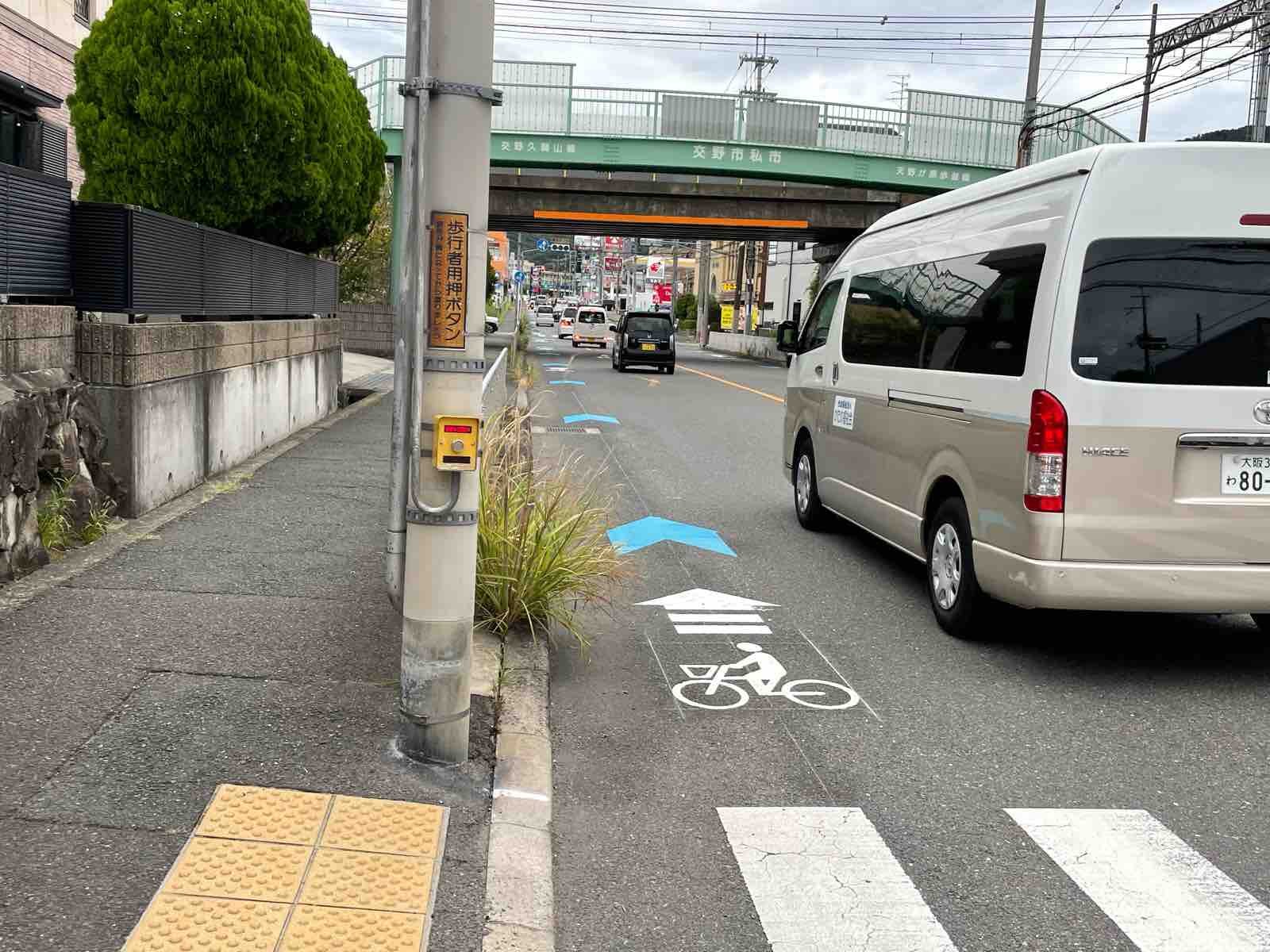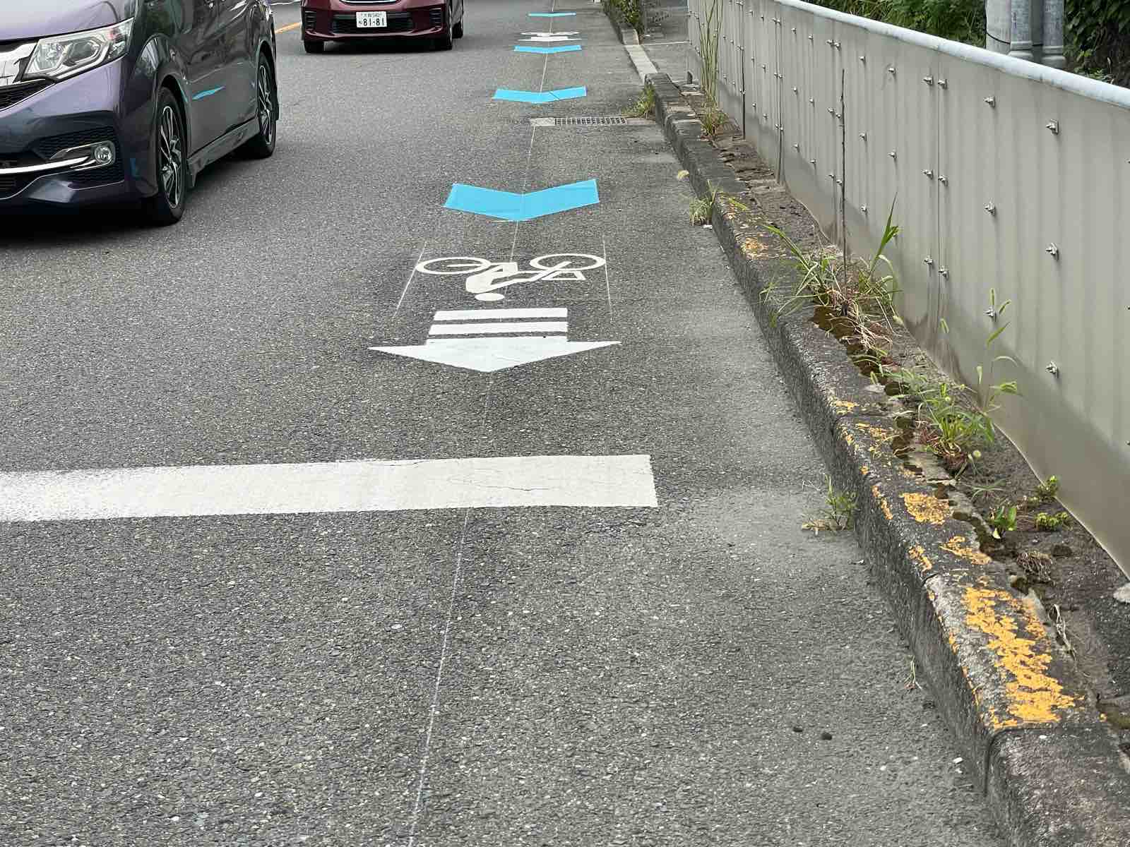 バイクはこのレーンを走ってはいけないのでしょうか? また、歩道を走っている自転車には罰則はありますか?教えていただけると助かります。