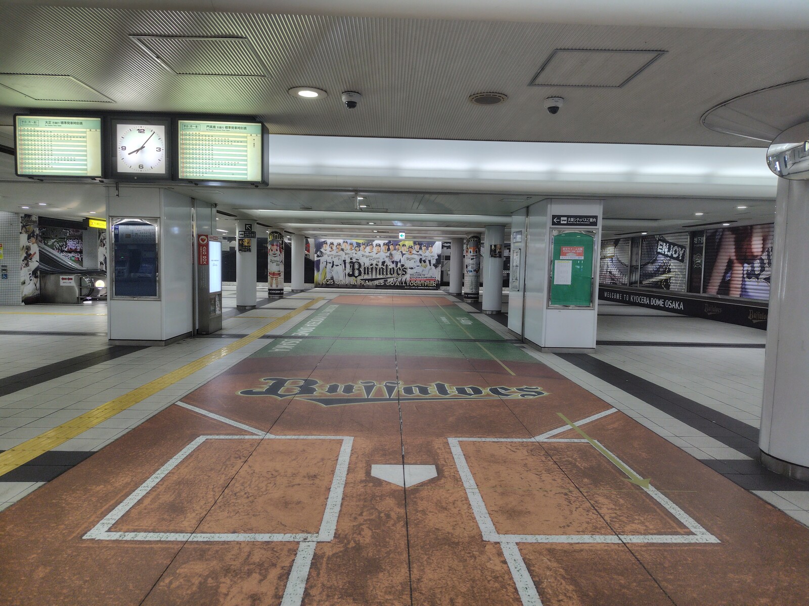 京セラドーム大阪の最寄り駅「地下鉄ドーム前千代崎駅」は、オリックス・バファローズの装飾がすごかったです。