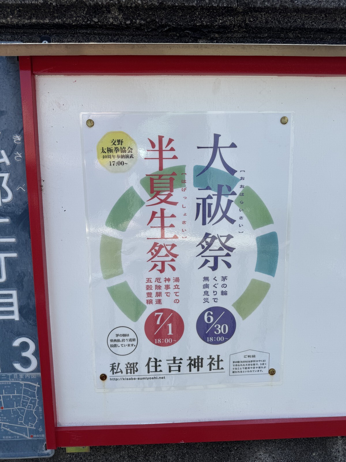私部歩いてると住吉神社の大祓祭、半夏生祭の案内よく見かける