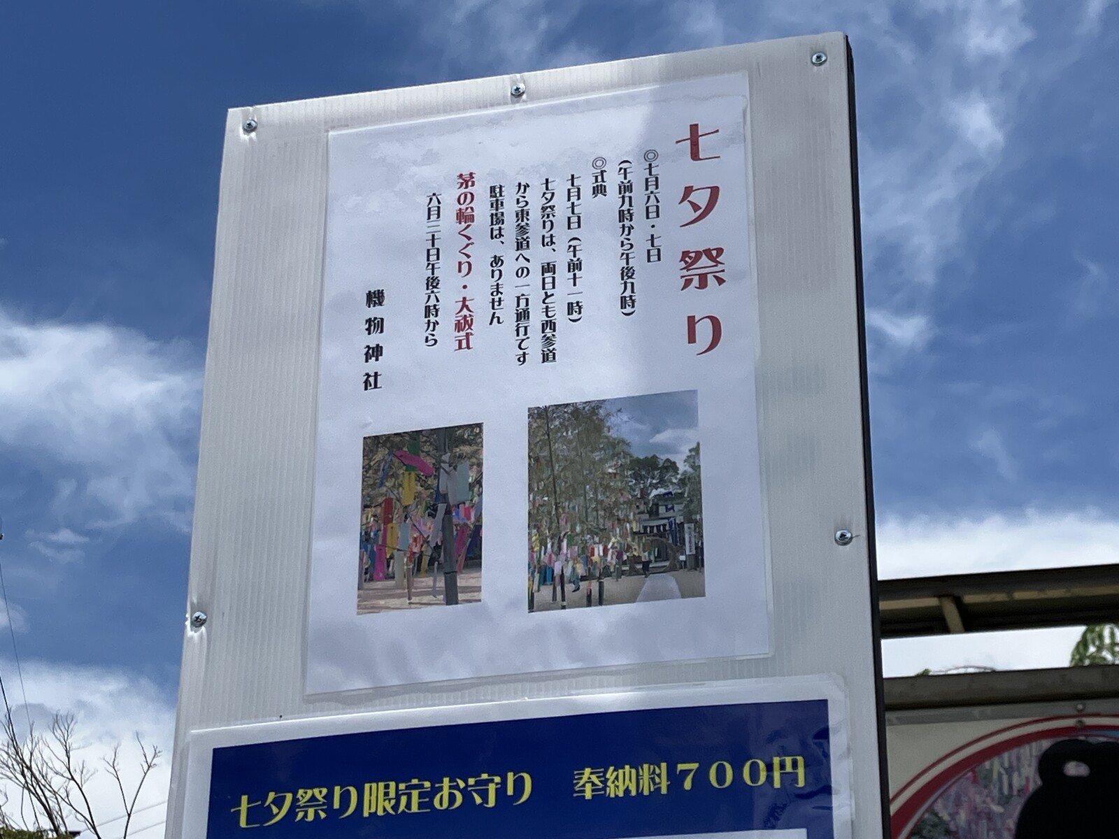 交野市倉治にある機物神社にも、七夕まつりのお知らせがありましたよ。