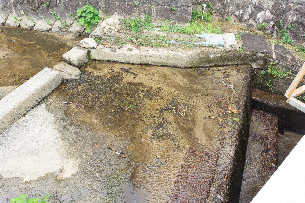 水量は少なめですが、傾斜があるためか水が勢いよく流れています。