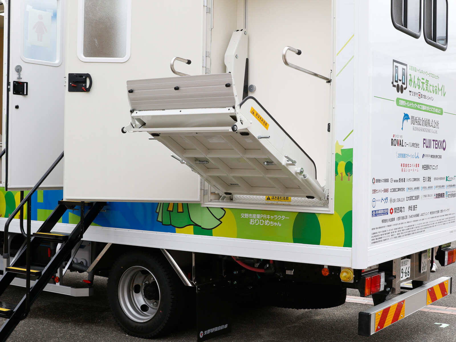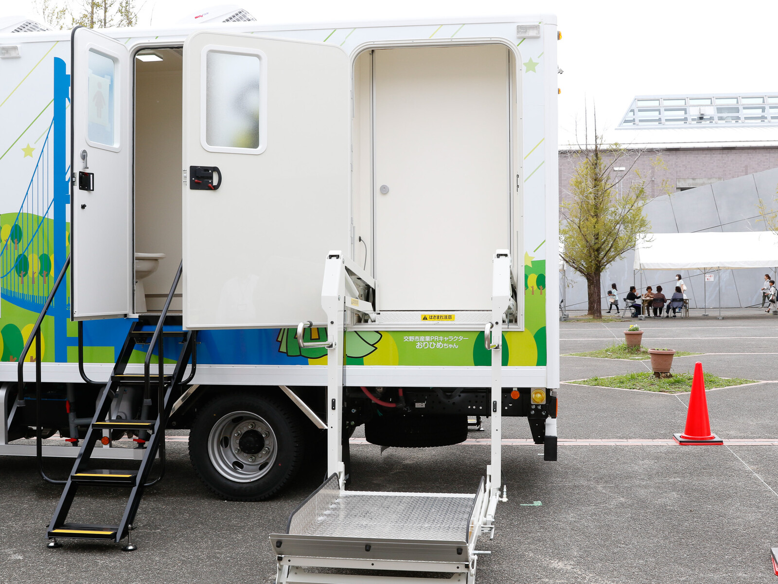 初お披露目のトイレトラック!車椅子なども使える多機能トイレもついてる!