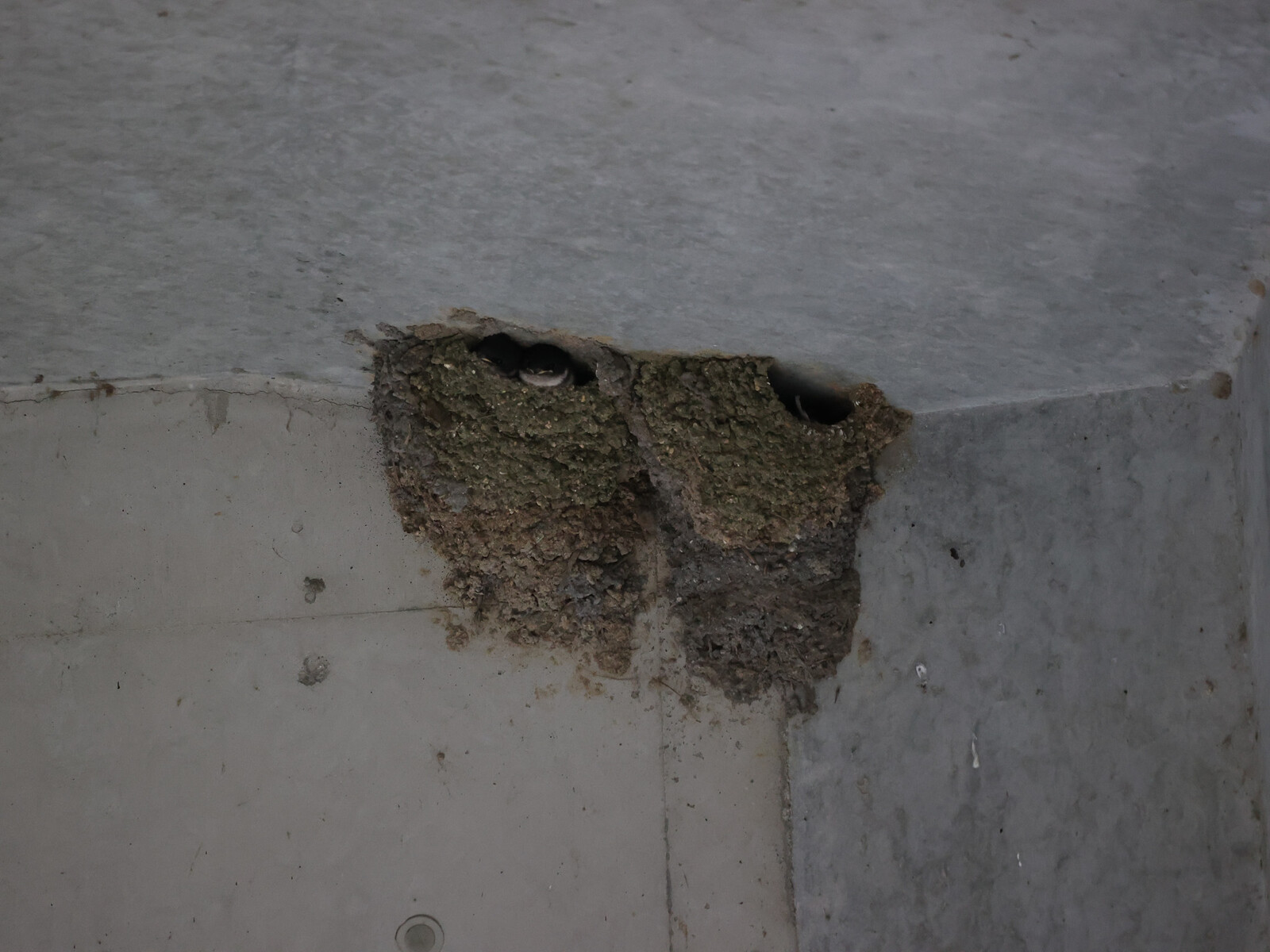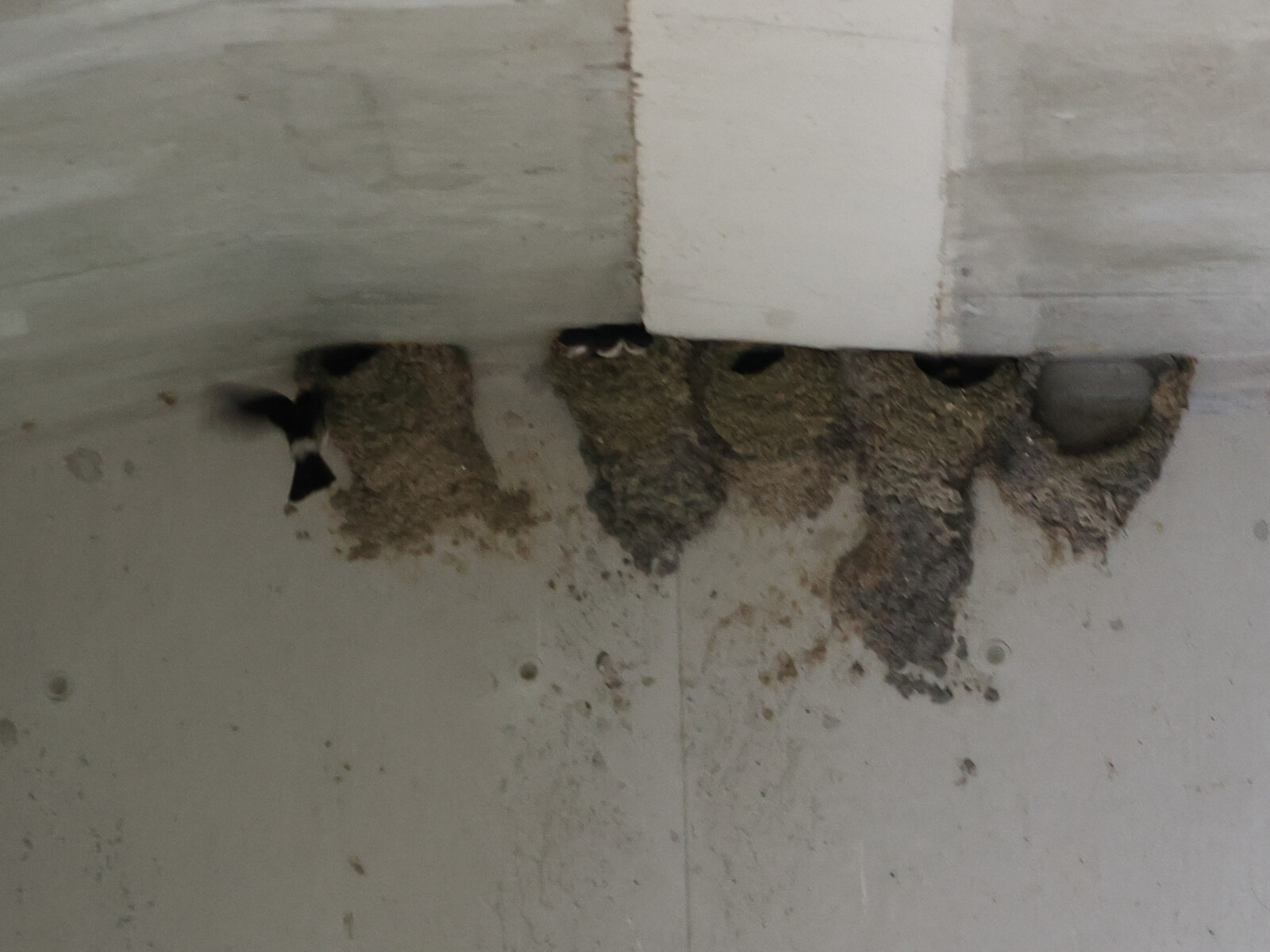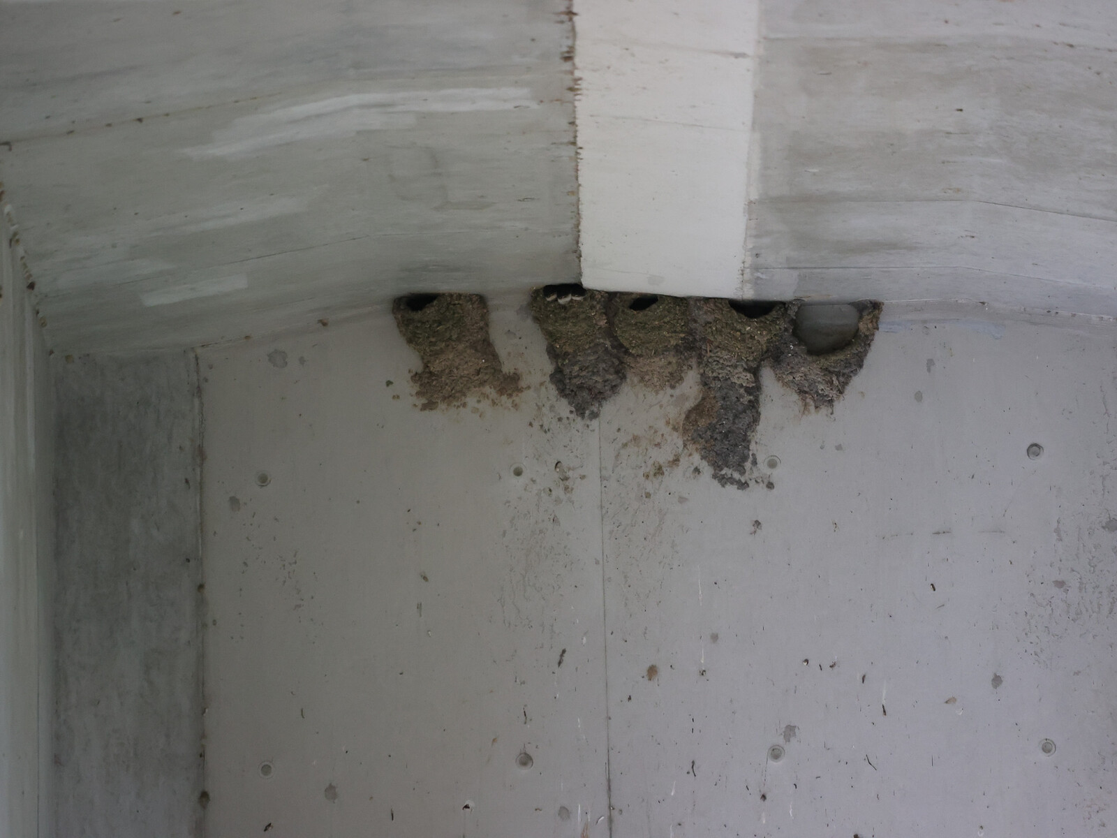 この時は、半分壊れたワイルドな巣の残骸だったのですが、先日橋脚の下を覗くと立派なツバメの巣になっていました。
