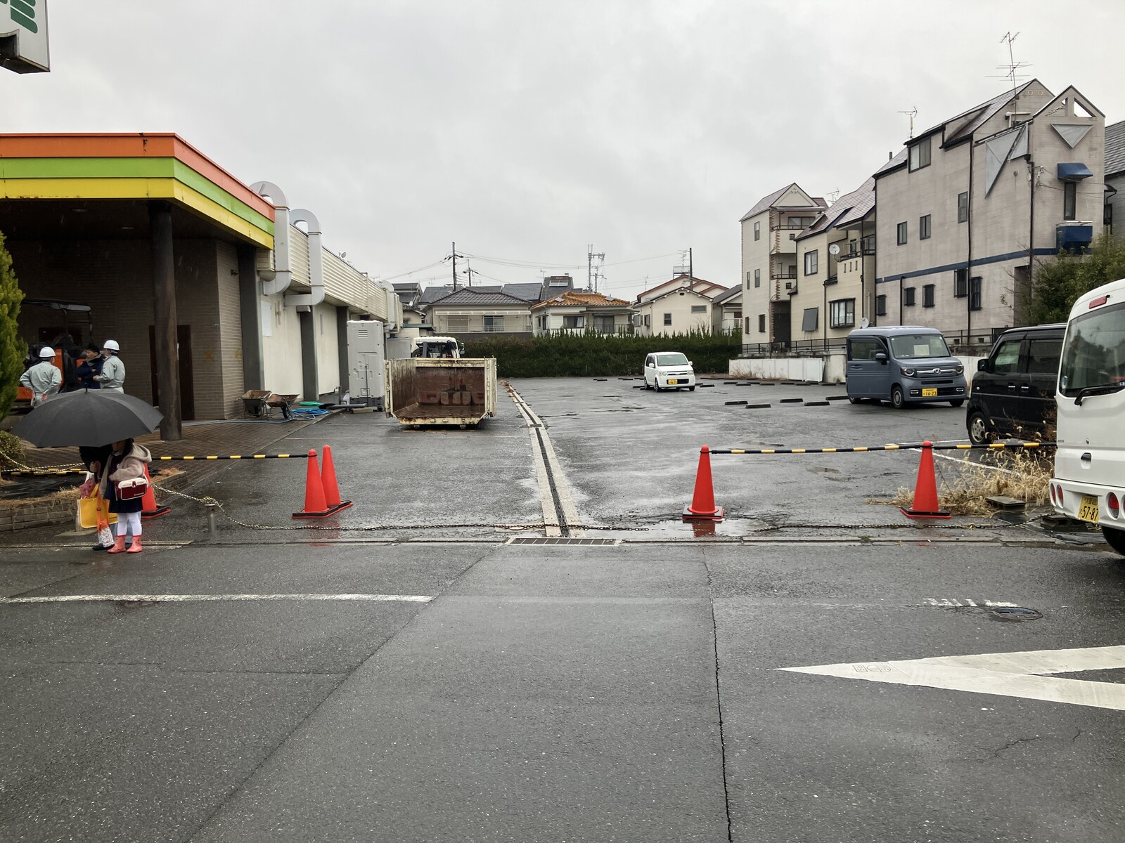お店の扉が開いており、外には重機のようなものも見受けられました。