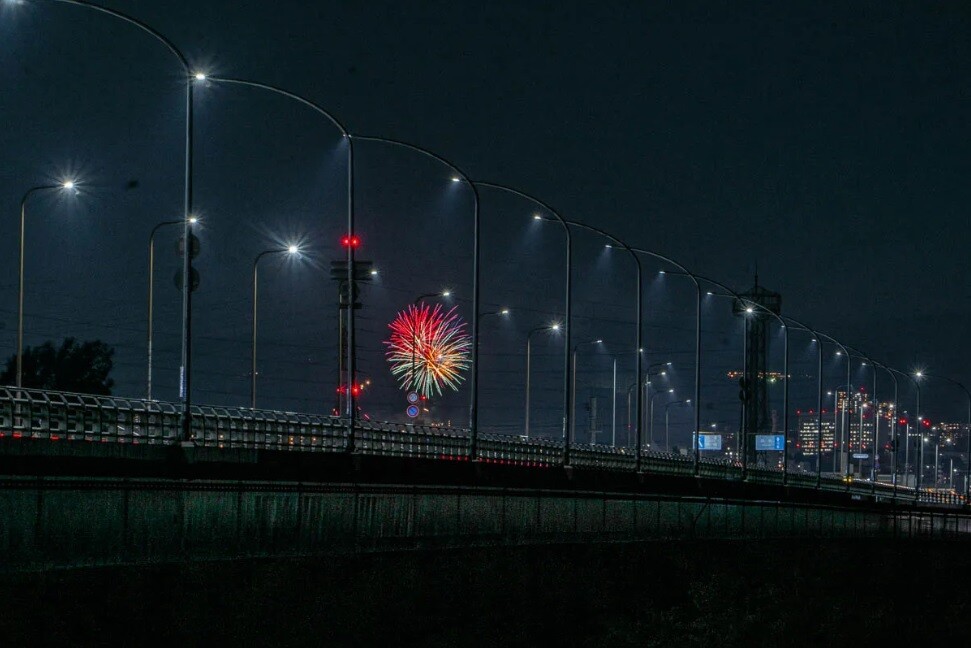標準レンズしかなかったので画質はよくありませんが、約20km先の花火が肉眼で見えたのはもちろんのこと、花火の音も時間差で聞くことができましたよ。