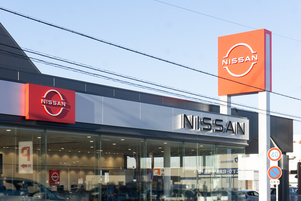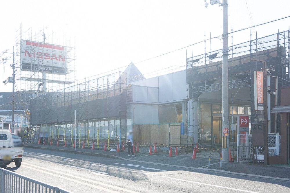 自動車販売店「日産大阪 交野店」がリニューアルしています。