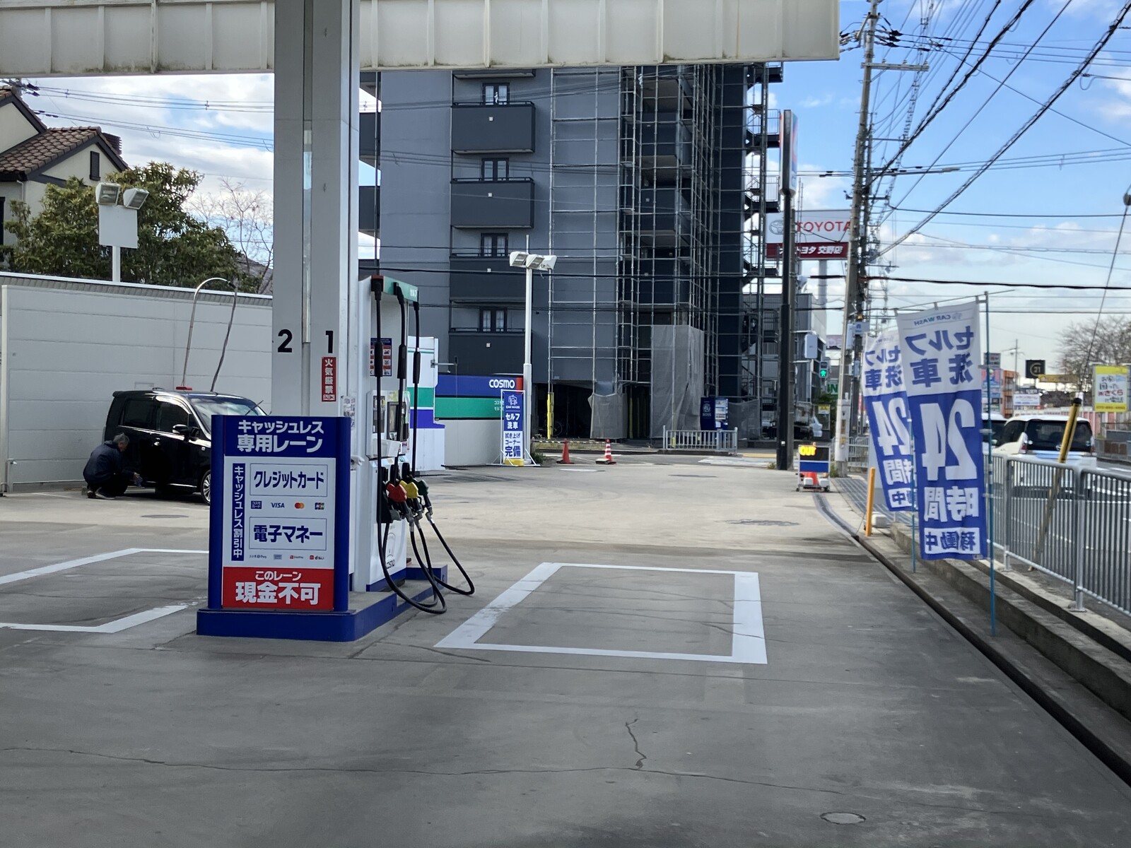 コスモ石油セルフピュア交野にキャッシュレスレーンができてる