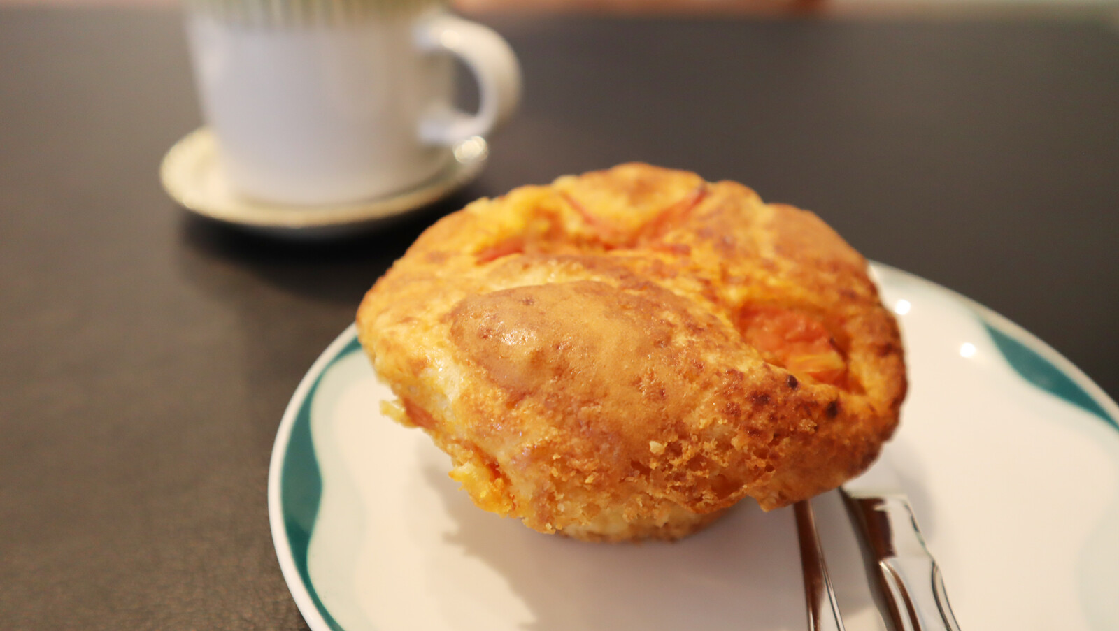 お菊@交野タイムズは、カフェオレと、トマトのマフィンを注文しました。