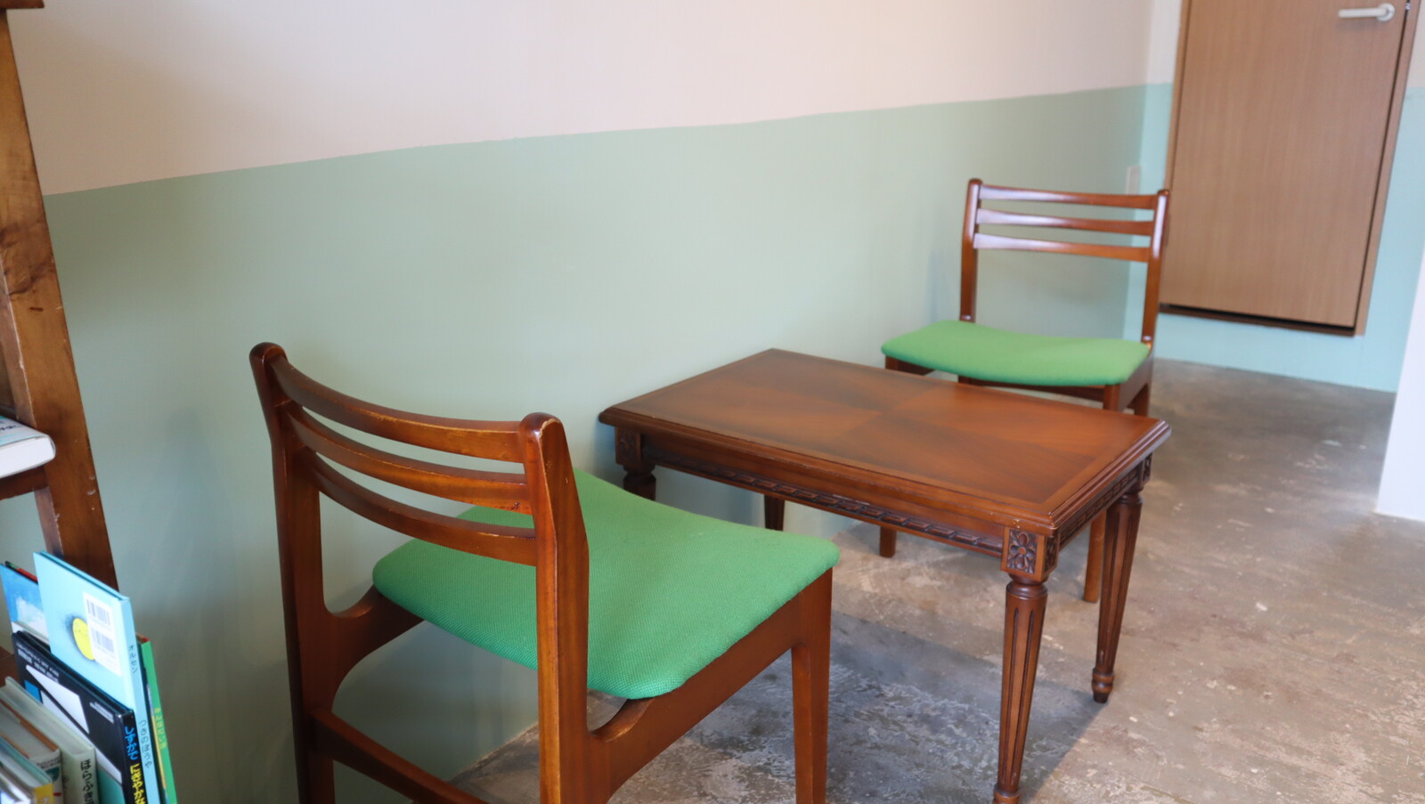 本棚には、いろいろな本があり、飲み物をいただきながらゆっくり読書もできそうです。