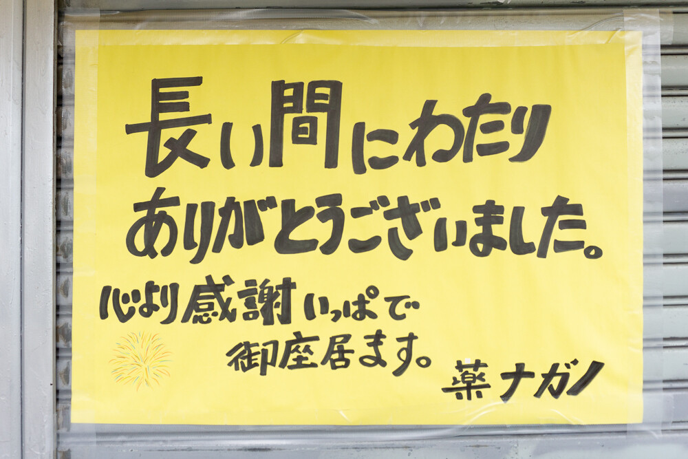 倉治交番近くの「ナガノ薬店」が閉店。「長い間にわたりありがとう」のメッセージも