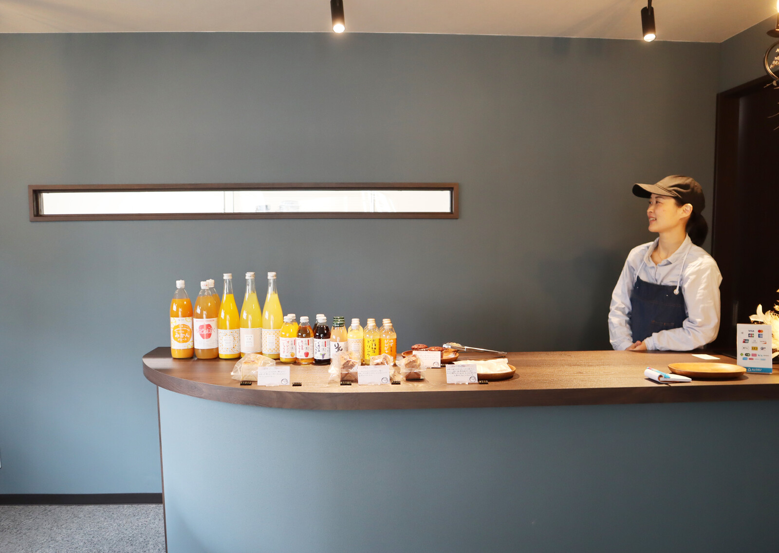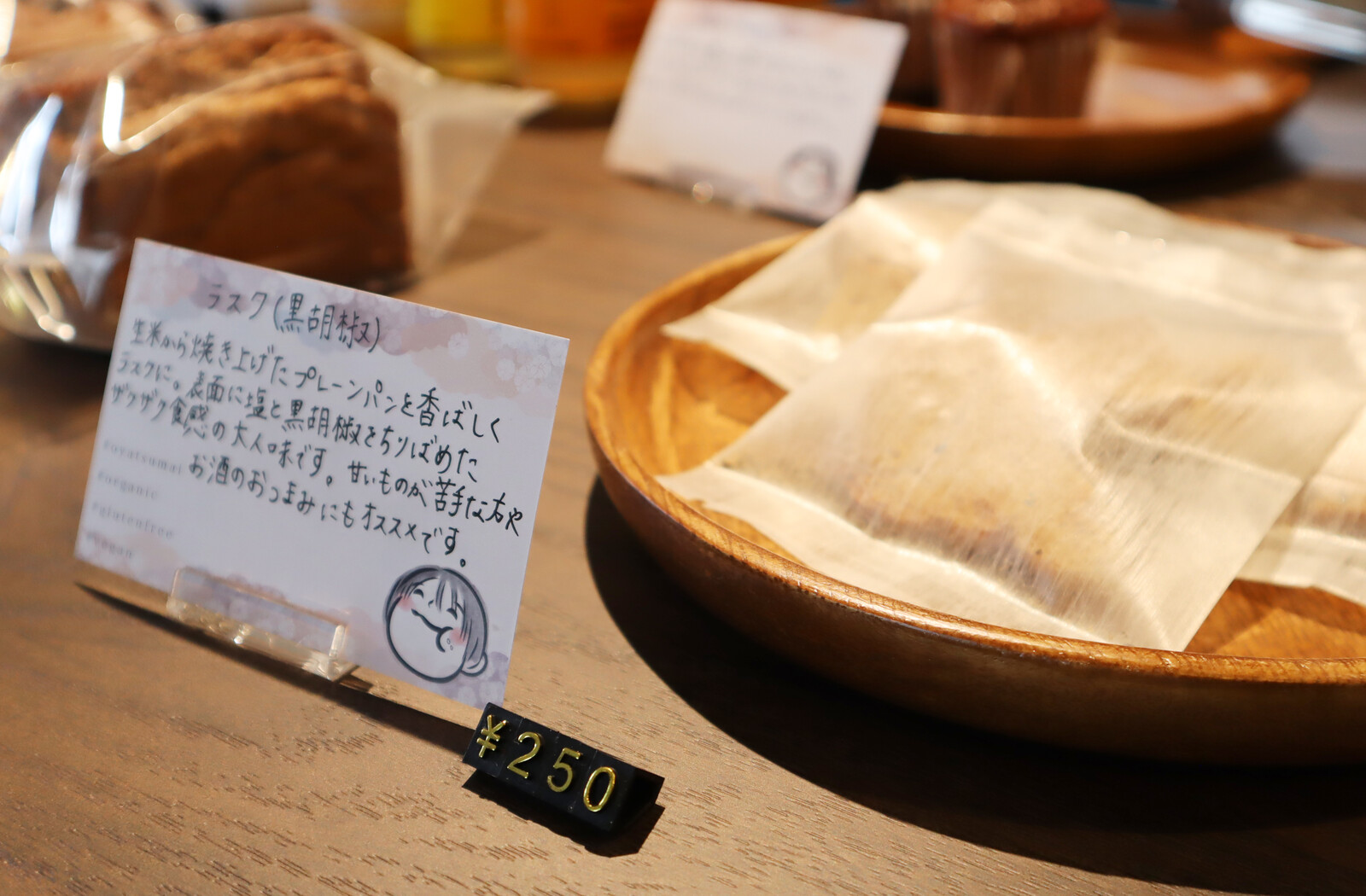カウンターには、お米からつくられたパンや、濃縮還元ではないジュースが並んでいます。