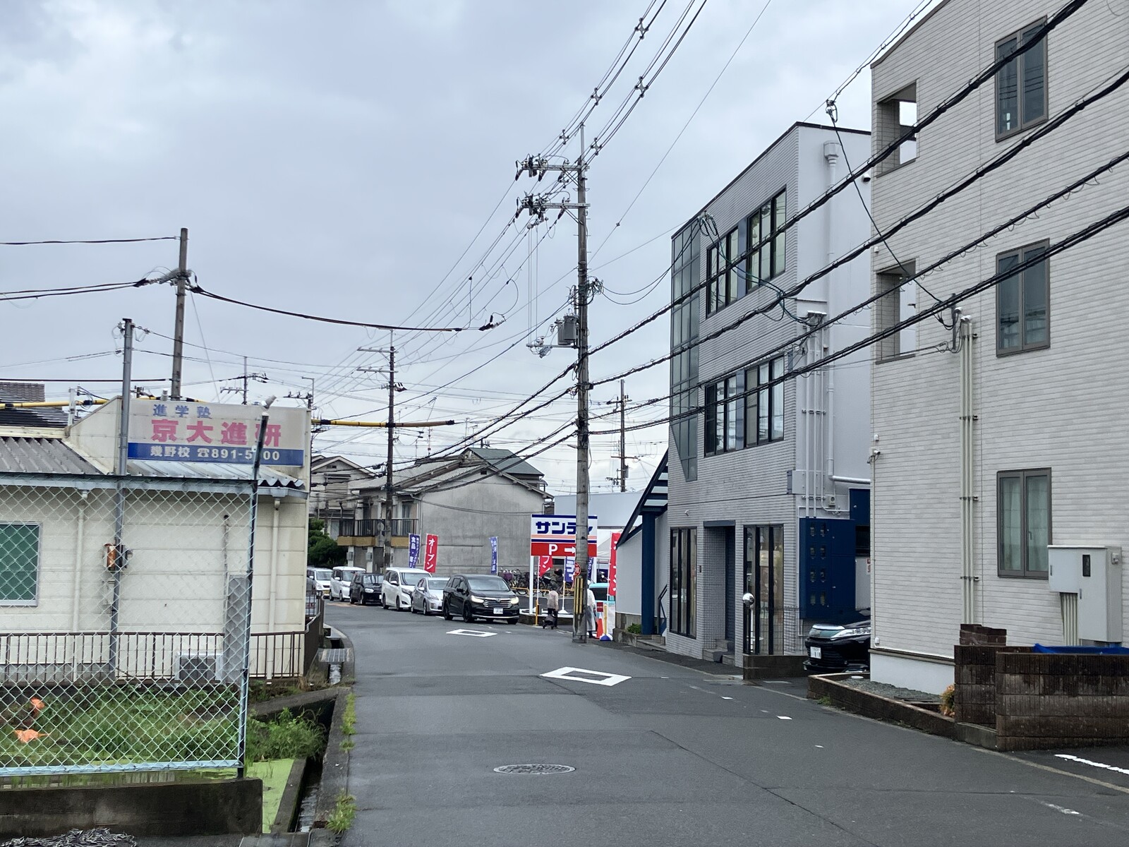 交野市立第二中学校(二中)側から歩いていくと、サンディ交野郡津店の大きな看板が見えてきました!