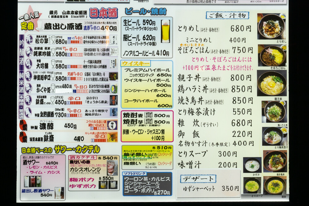 焼き鳥をはじめとして逸品や揚げ物が充実。