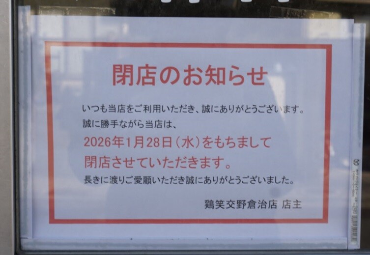 倉治の唐揚店「鶏笑」が閉店してる【情報提供:アカツキさん】