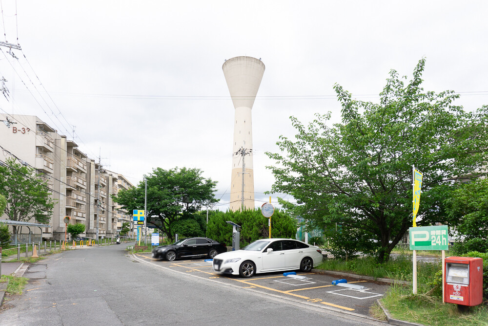 続いて第2集会所横の「プラスパークス 交野梅ヶ枝住宅-B」は、給水塔前の交差点を左折した先にあります。