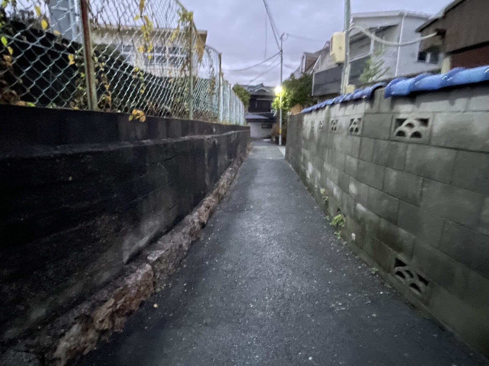 徒歩か自転車、バイクぐらいしか、通れない細道です。