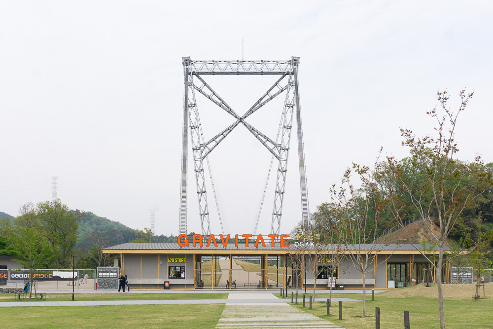吊り橋の場所は、茨木市の安威川ダム周辺「ダムパークいばきた」にあるアクティビティパーク『GRAVITATE OSAKA(グラビテート オオサカ)』内です。