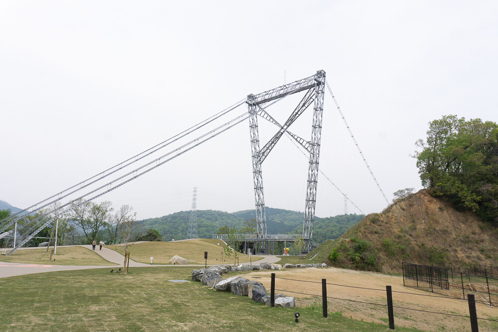 吊り橋「GODA BRIDGE」は高さ60m、逆ハの字の主塔がシンボルです。