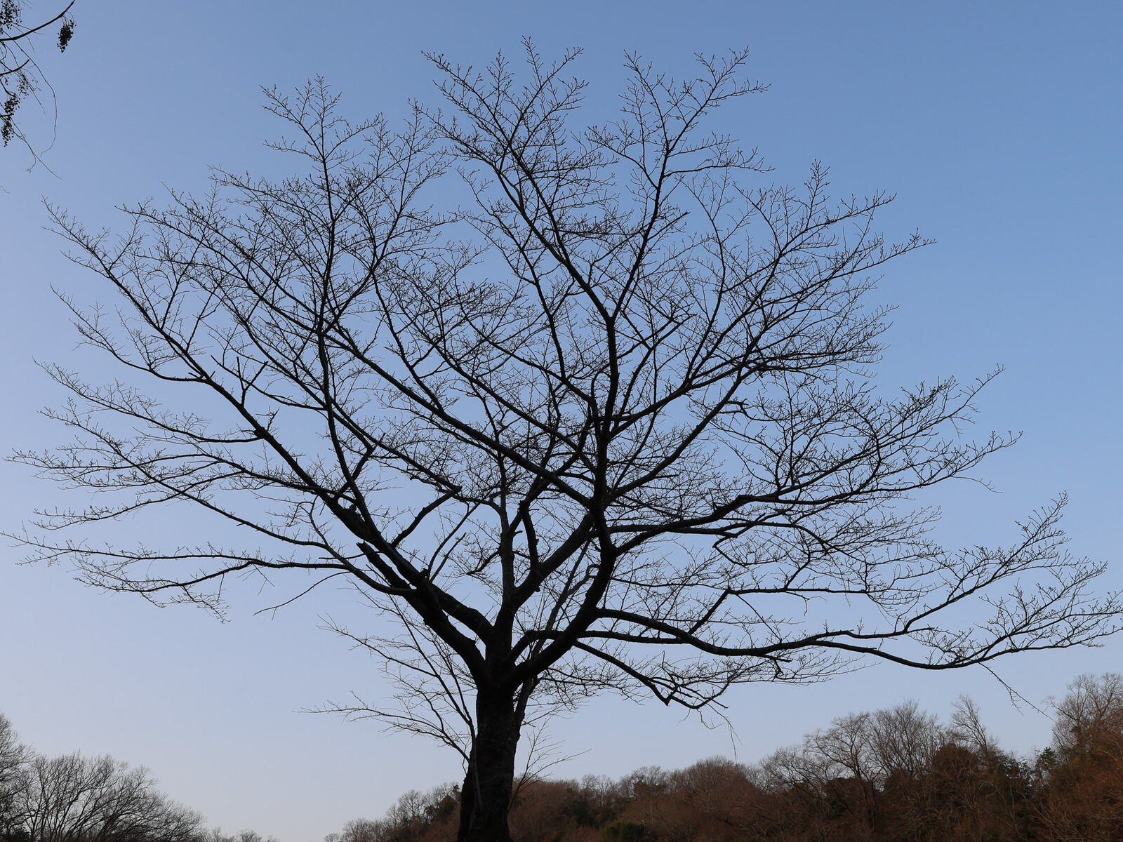 坂道を登った先には、姿の整った桜の樹が1本立っています。