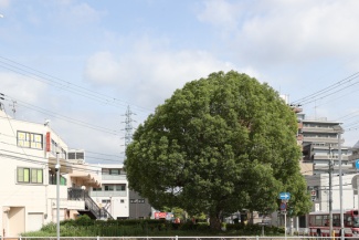 いつからあるのかわからない交野駅前交差点のクスノキ