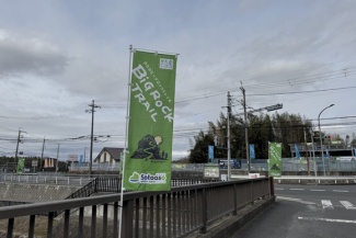 かたのビッグロックトレイルのノボリ出てる。星の里いわふねのところ